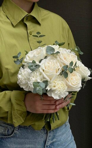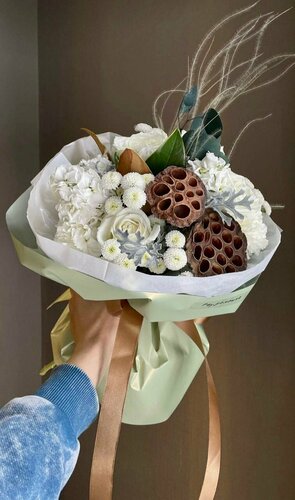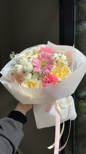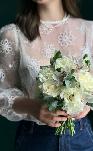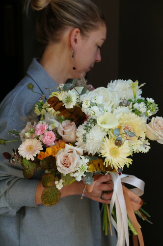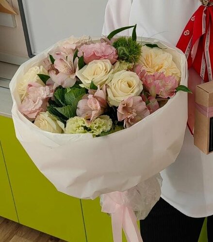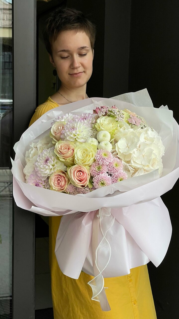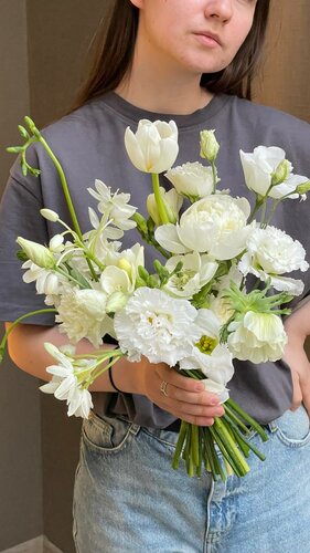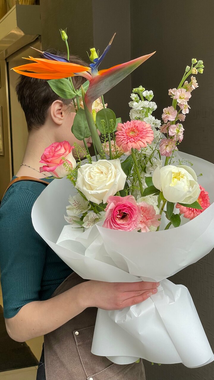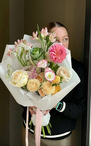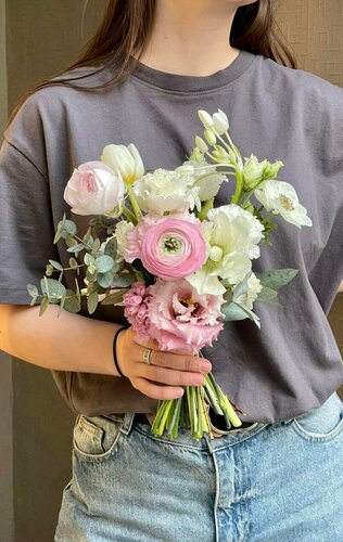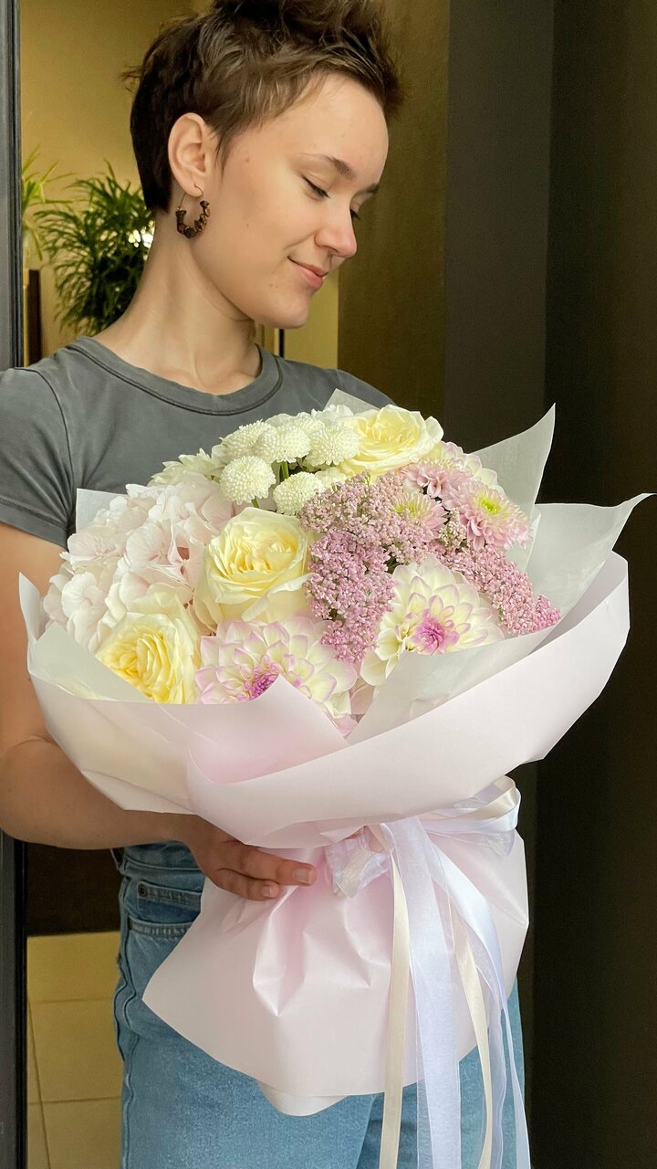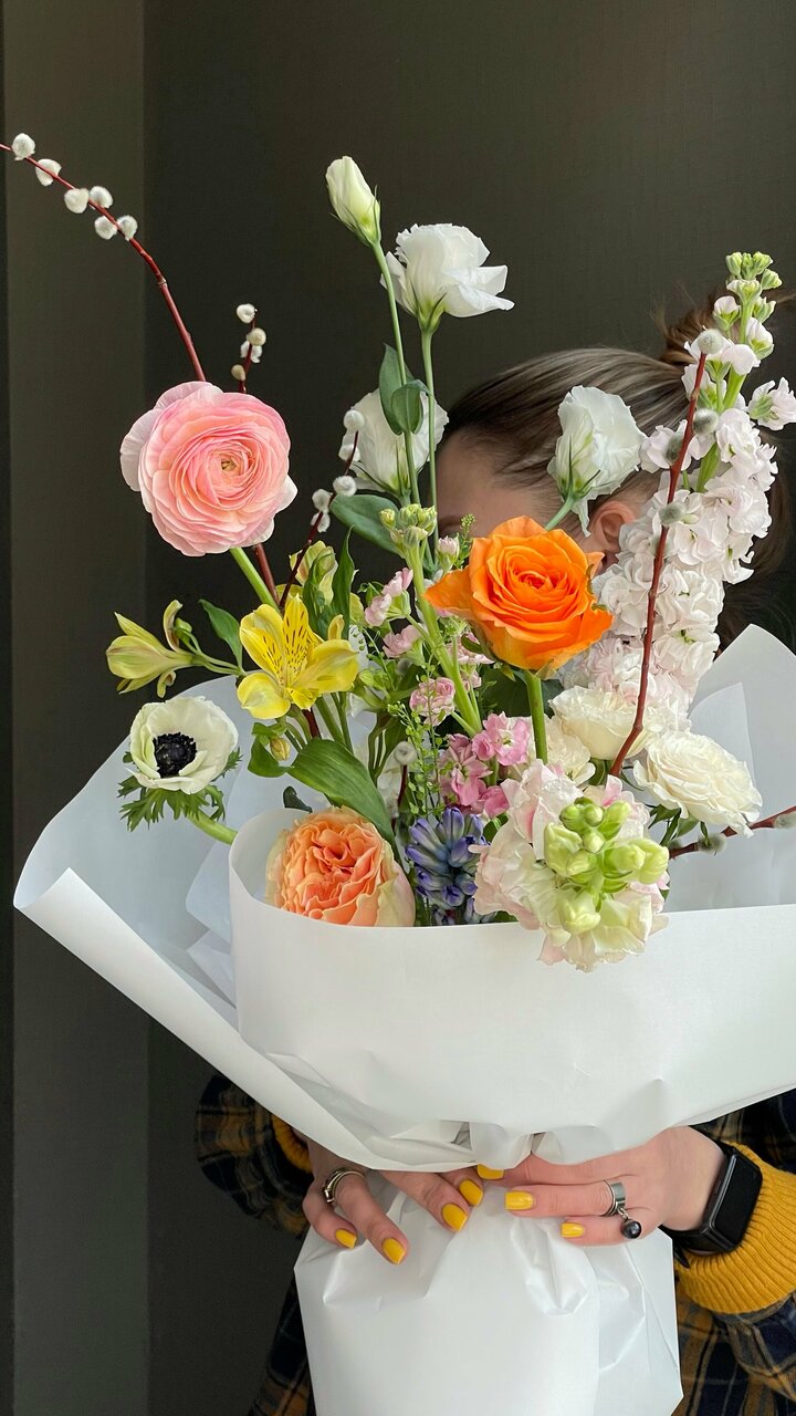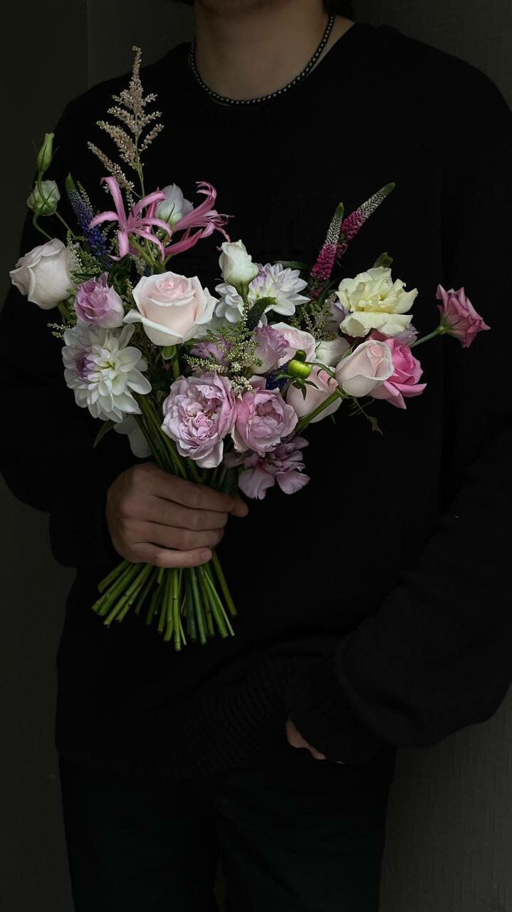 Каждый букет мы придумываем и собираем индивидуально, опираясь на ваши пожелания 🤍