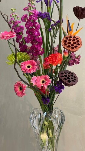 Посетила салон , хотела яркий букет. Нужен был комплементарный и недорогой букет. Флорист Егор учел все пожелания. Спасибо за стильный букет!